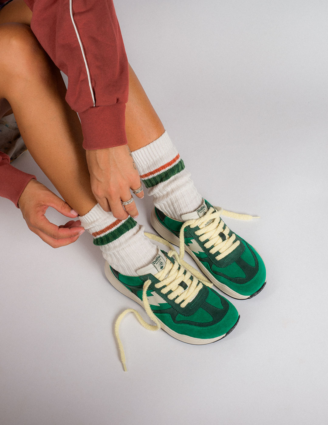 Lightning bolt and heel tab: Premium eco-friendly natural leather