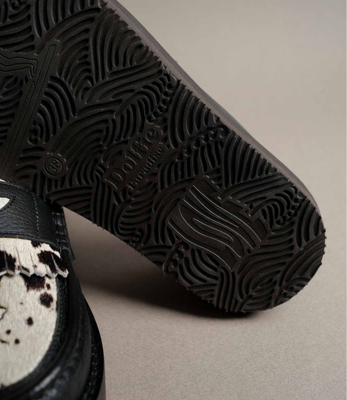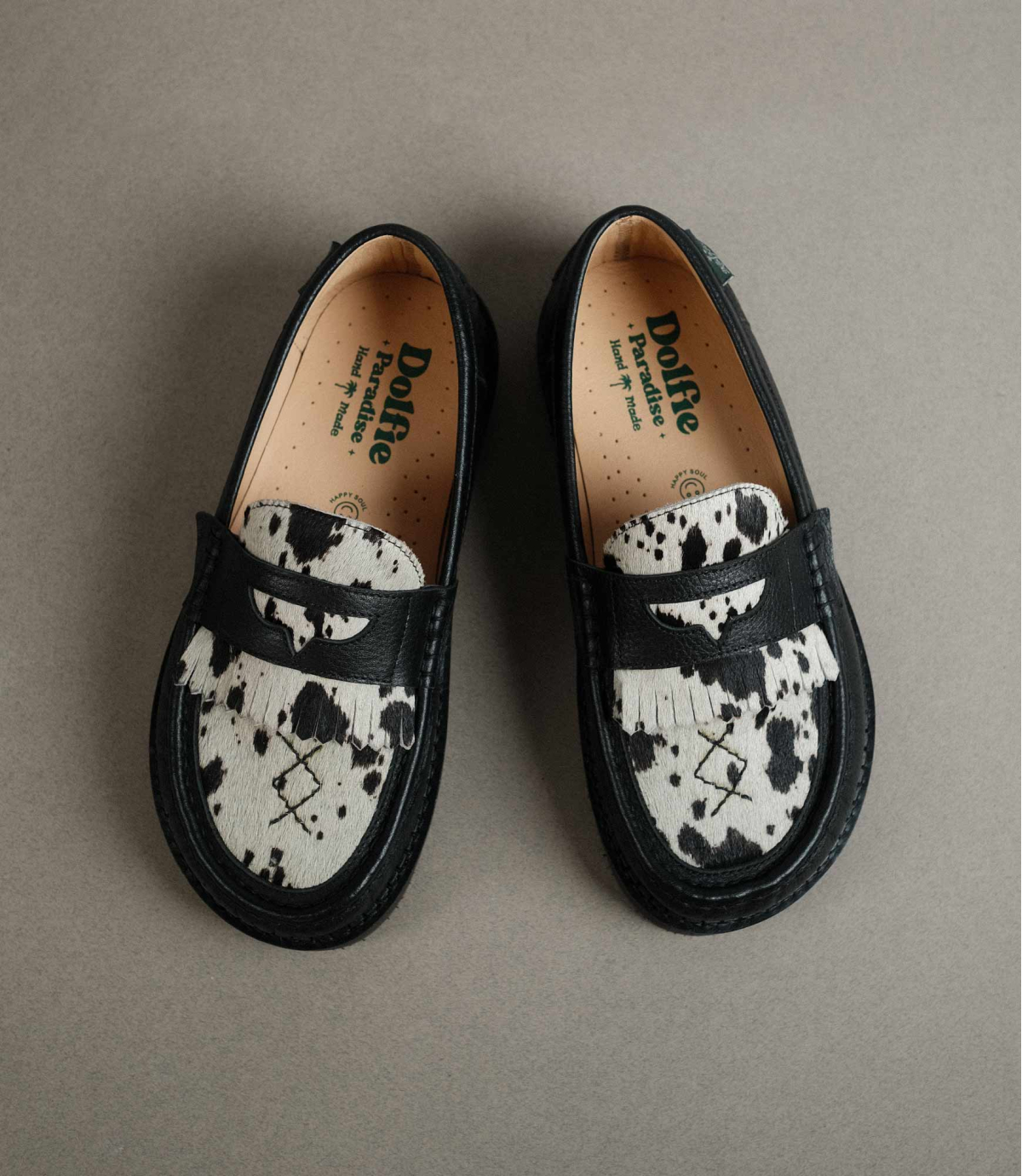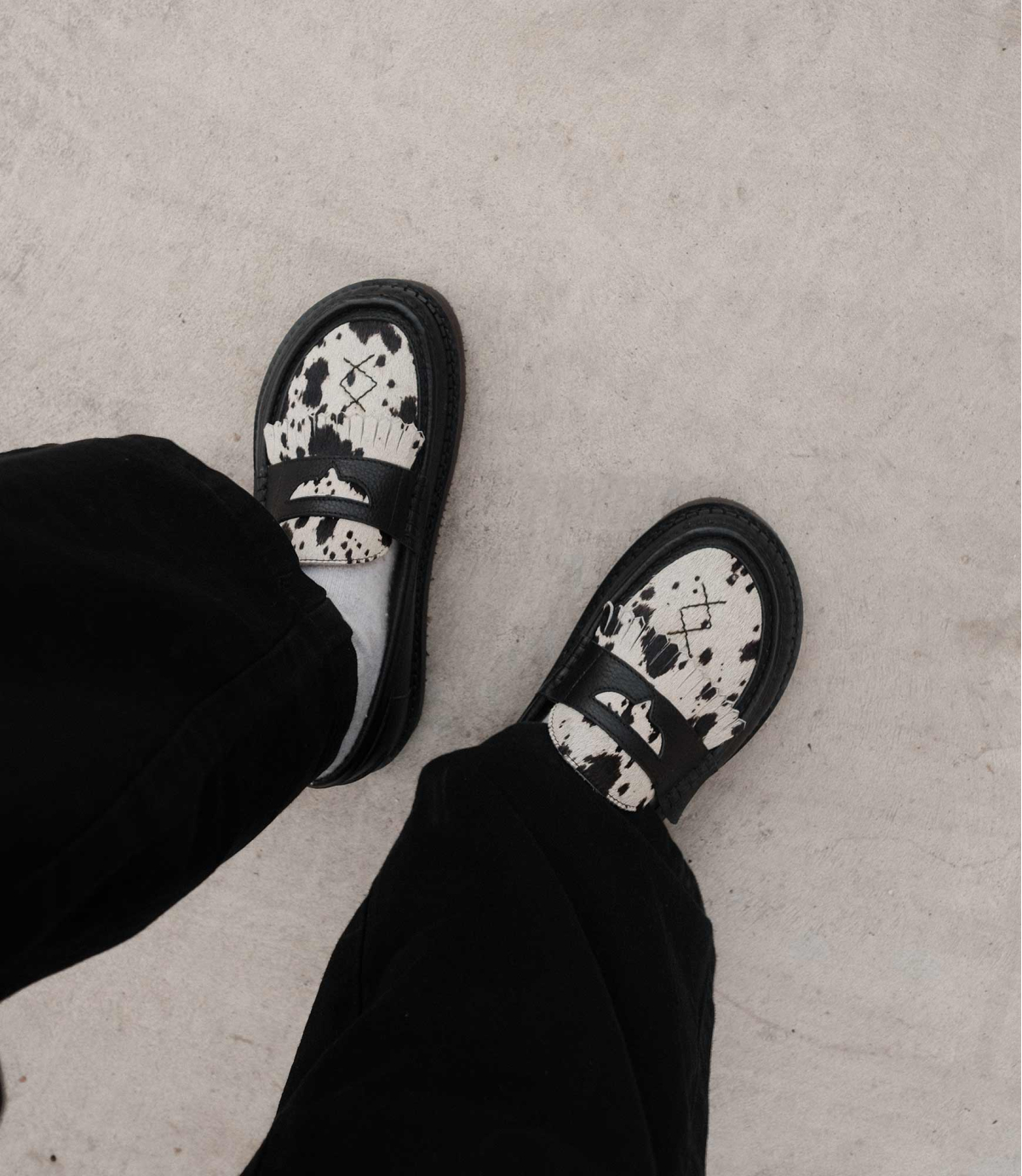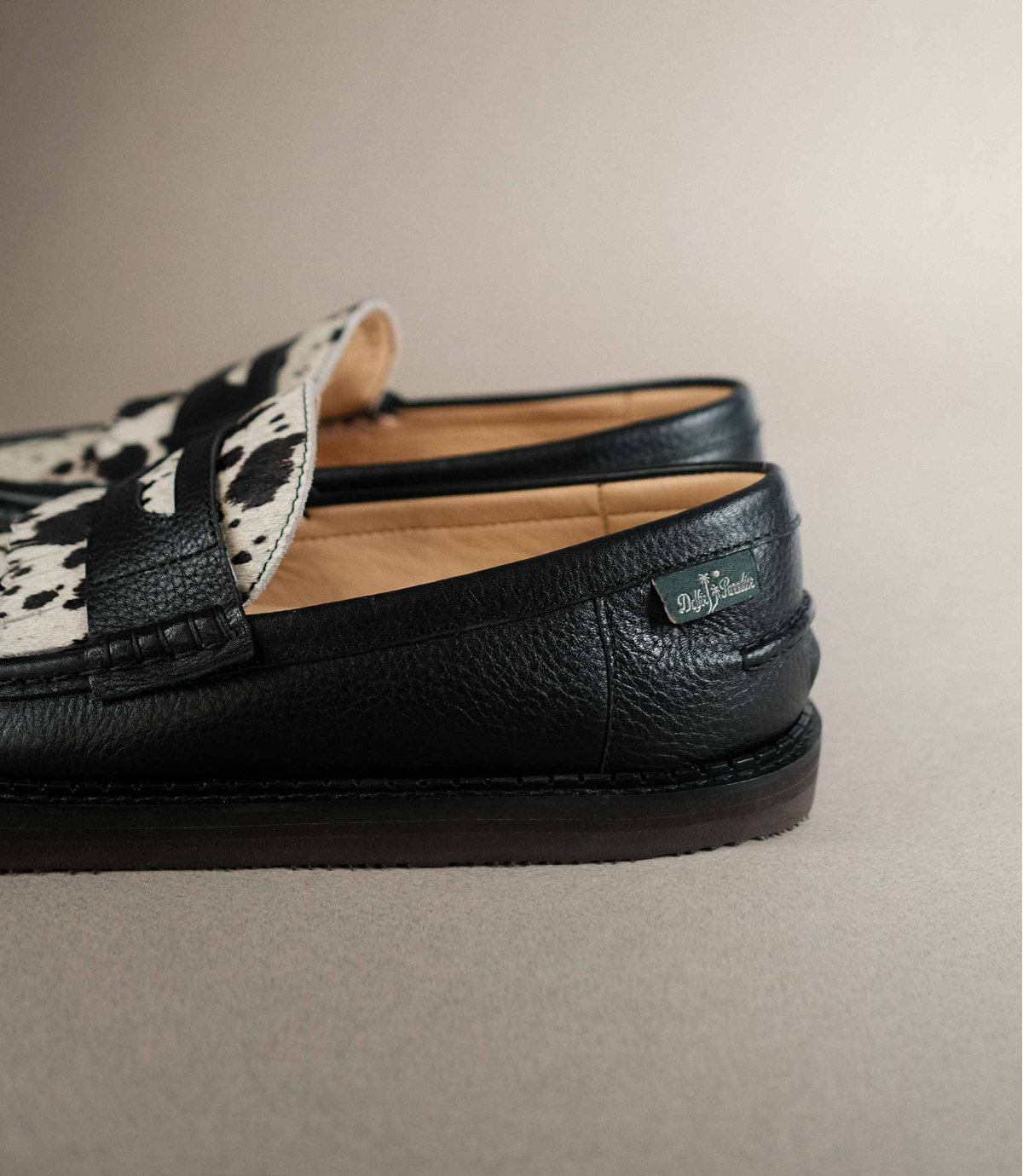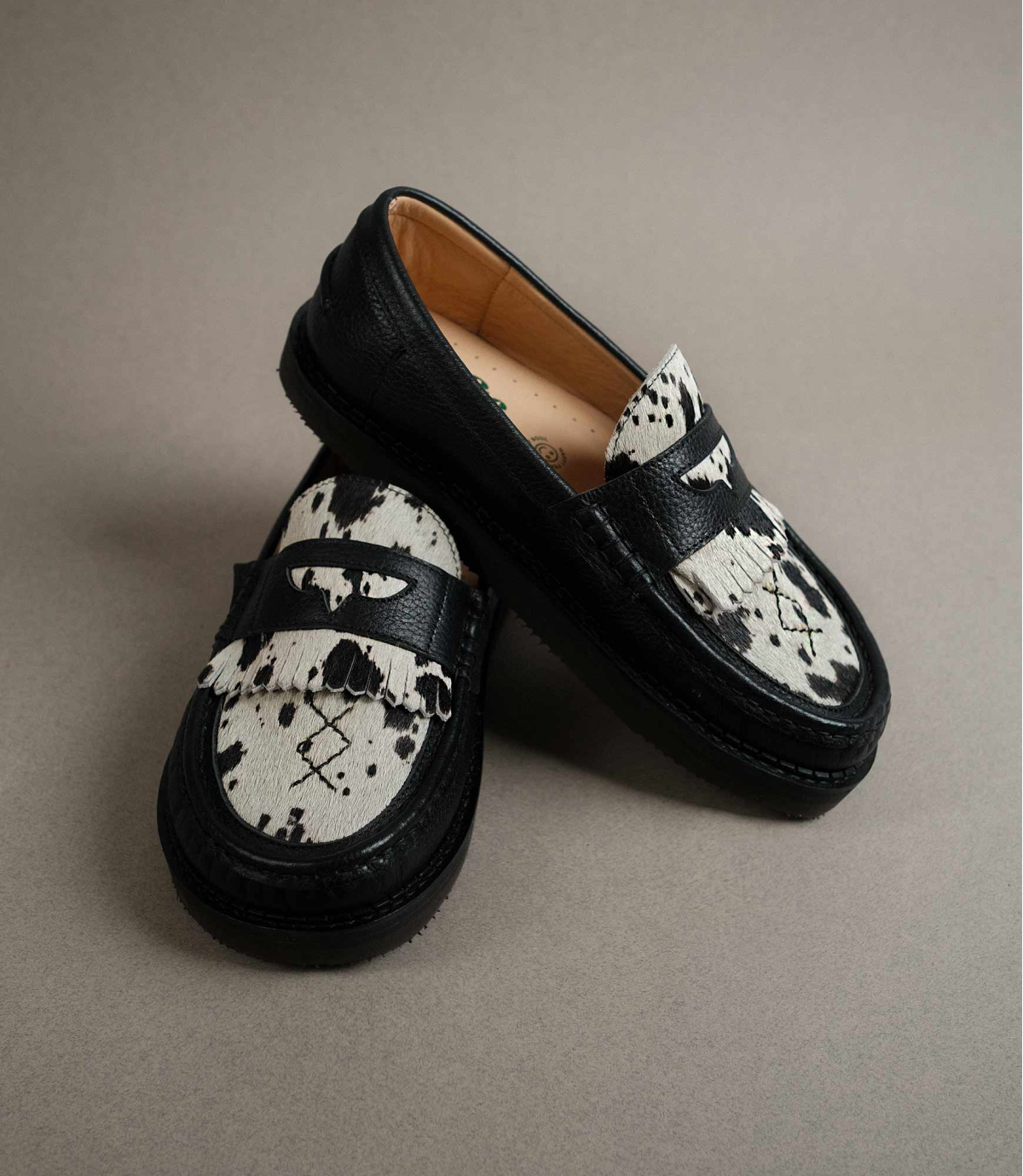 Duke Wildhide combines Italian full-grain leather with printed hair-on cowhide in a loafer made for a relaxed, open fit and long-term comfort. The leather is soft from day one and starts shaping to your foot within the first wears.