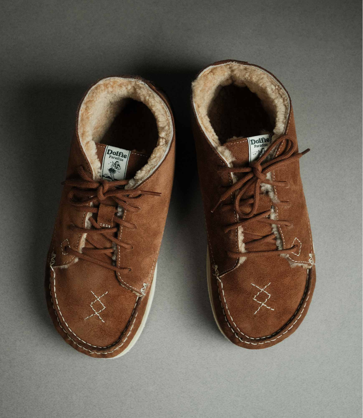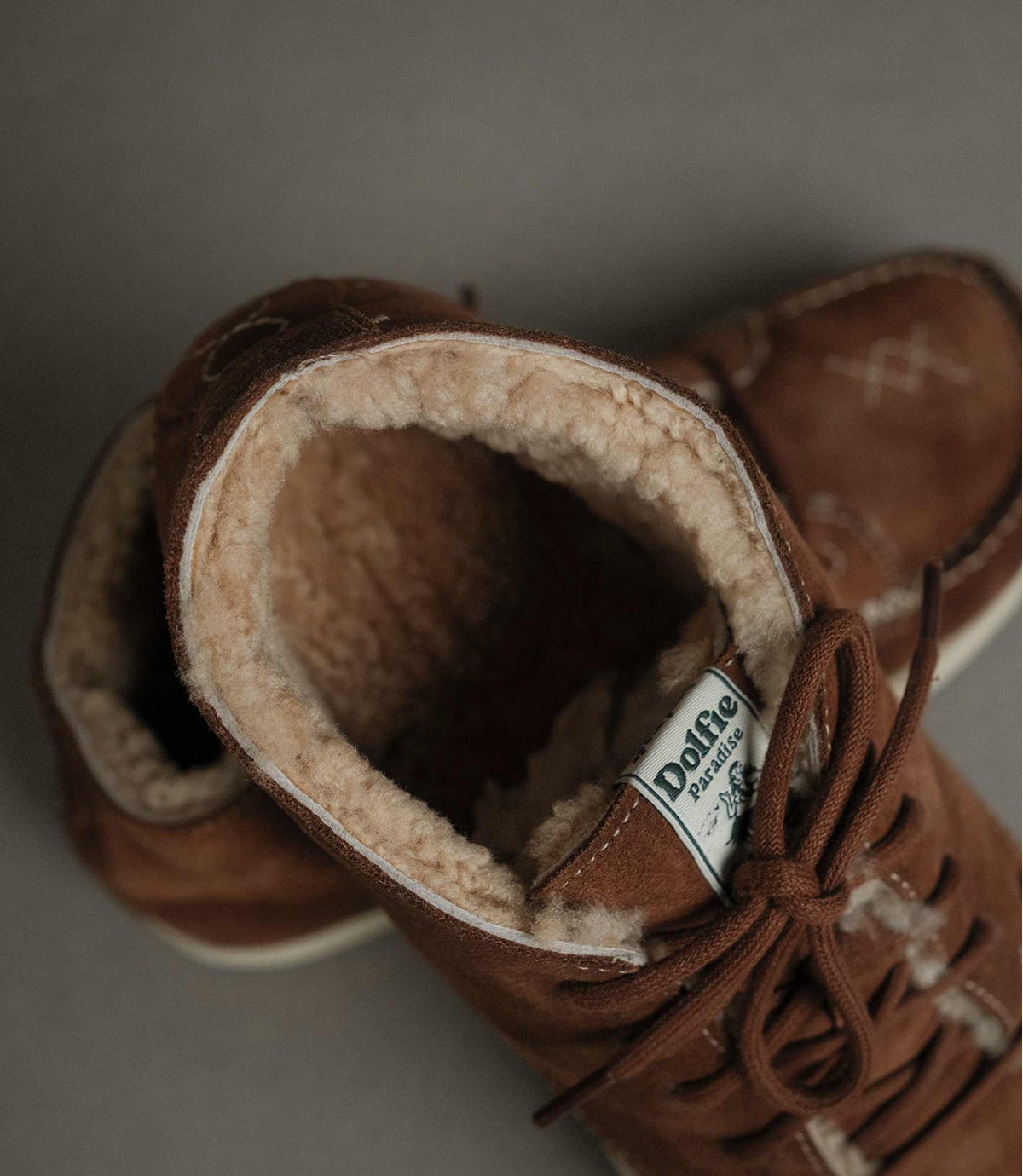 At Dolfie, the origin and respect for our materials are essential. The shearling we use is a byproduct of the food industry, never from animals raised or sacrificed for footwear. It is sourced under European animal-welfare standards and selected in Holland for its softness, density, and thermal quality.