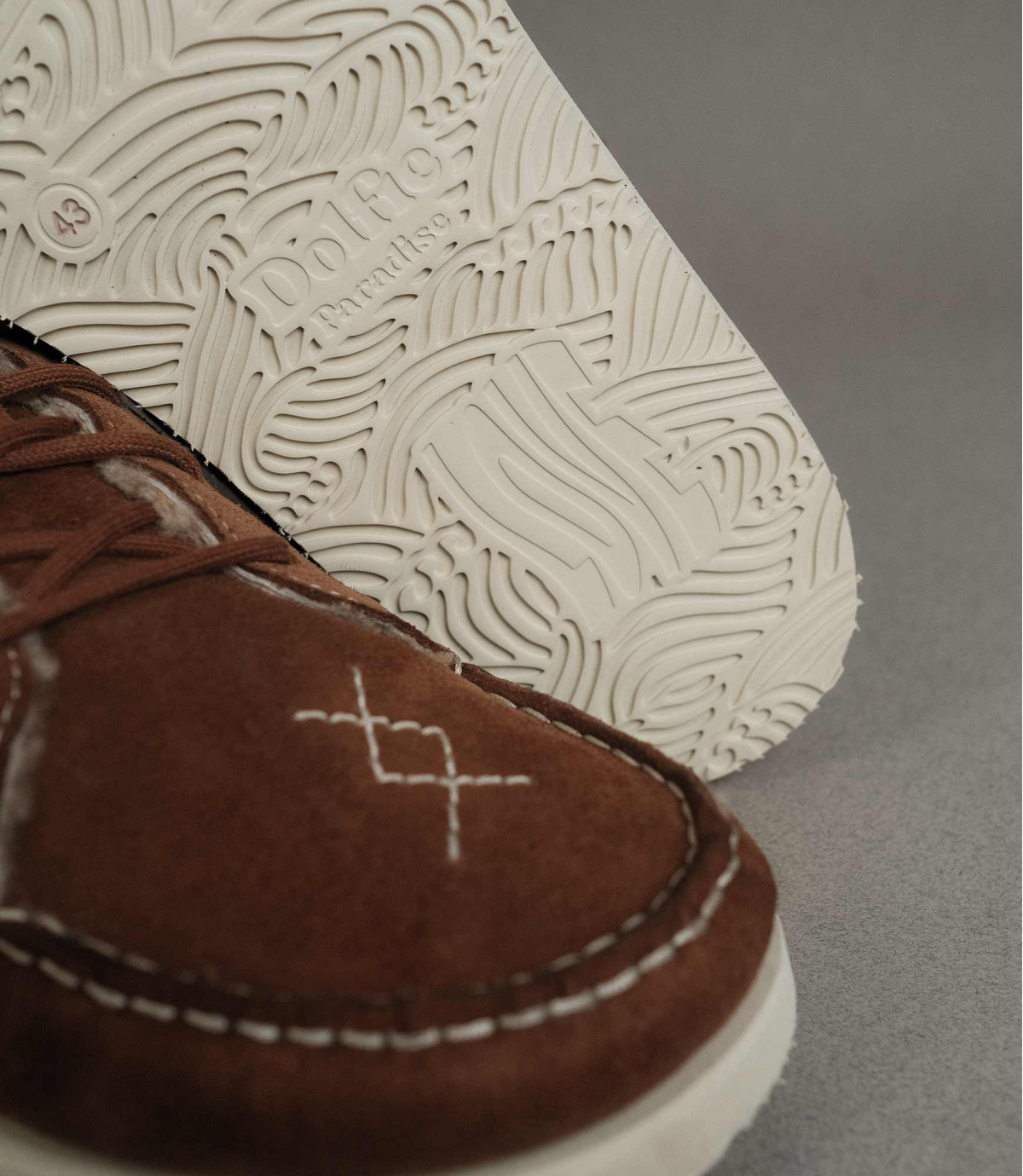 - Stitched natural rubber Dolfie custom sole