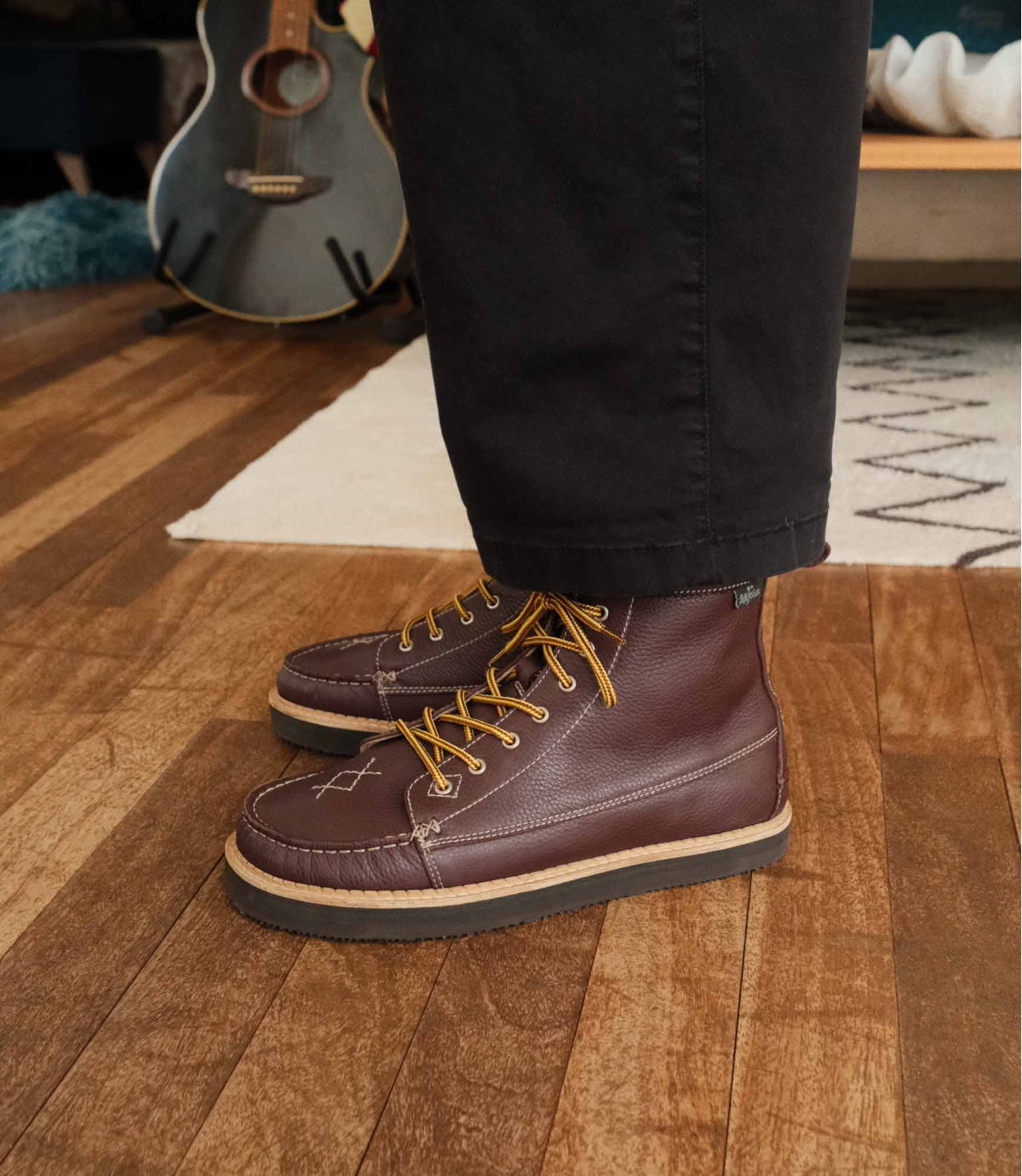 Eddie is crafted from premium Italian full-grain leather, a dense yet supple material that develops character over time and adapts to your foot with wear. It’s a moccasin-built boot designed to deliver style and comfort from day one, with a relaxed, stable fit that feels easy and fluid as you walk.
