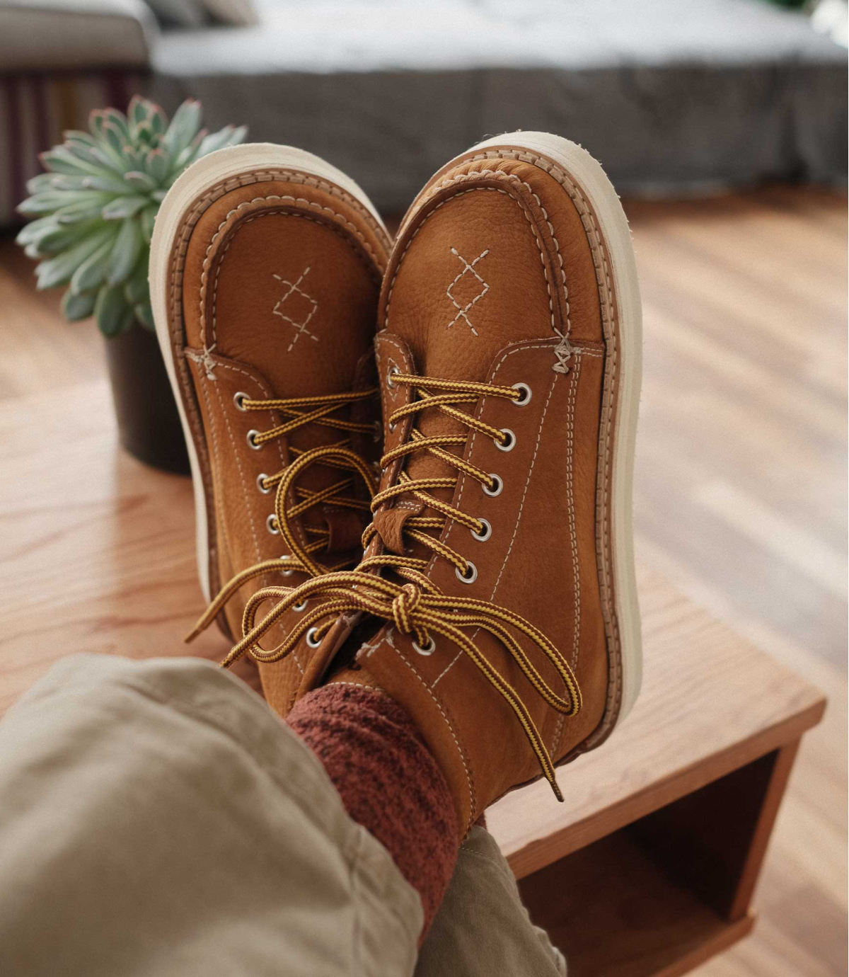 Eddie is crafted from premium Italian nubuck, a soft, brushed leather that gains character with wear and molds naturally to your foot. It’s a moccasin-built boot designed to deliver style and comfort from day one, with a relaxed, stable fit that feels easy and fluid as you walk.