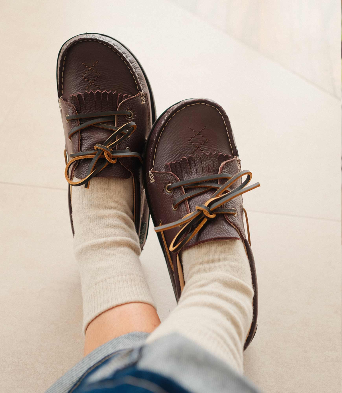 Se confecciona a mano en un pequeño taller familiar de Portugal con más de un siglo de experiencia en mocasines. Su construcción zero drop mantiene el pie en su posición natural, mientras que la forma respeta la anatomía del pie, dejando más espacio en la zona de los dedos para una comodidad real.