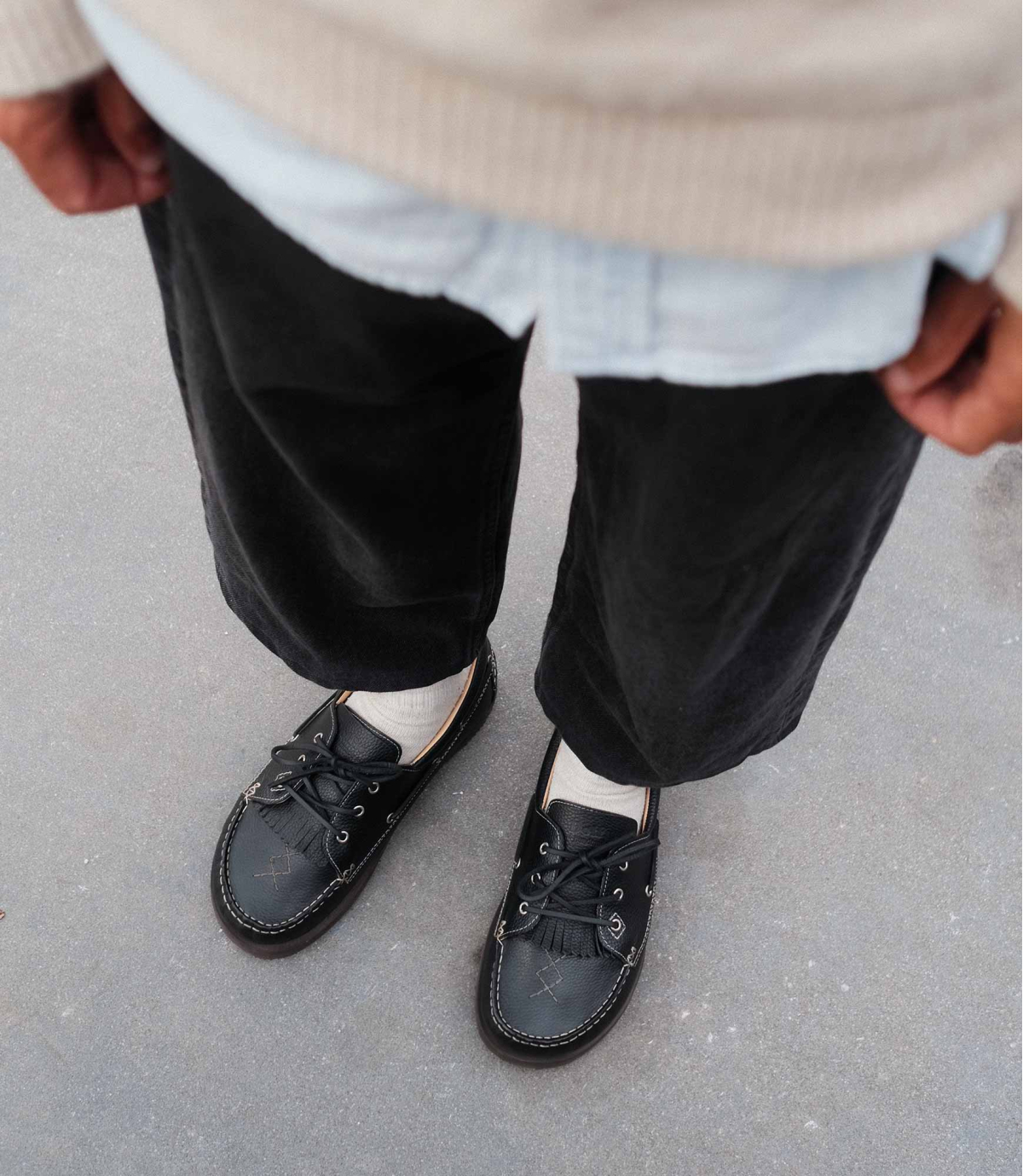 Se confecciona a mano en un pequeño taller familiar de Portugal con más de un siglo de experiencia en mocasines. Su construcción zero drop mantiene el pie en su posición natural, mientras que la forma respeta la anatomía del pie, dejando más espacio en la zona de los dedos para una comodidad real.
