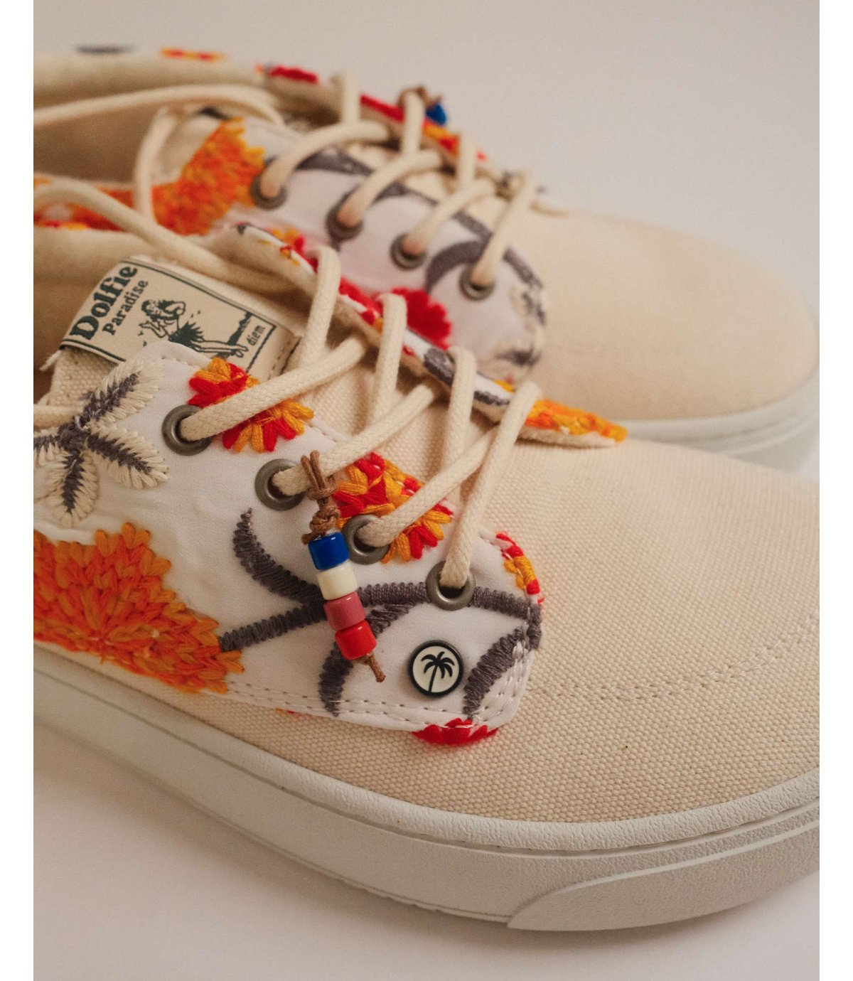 Cada par es único. El bordado varía en cada pieza según el corte del tejido.
